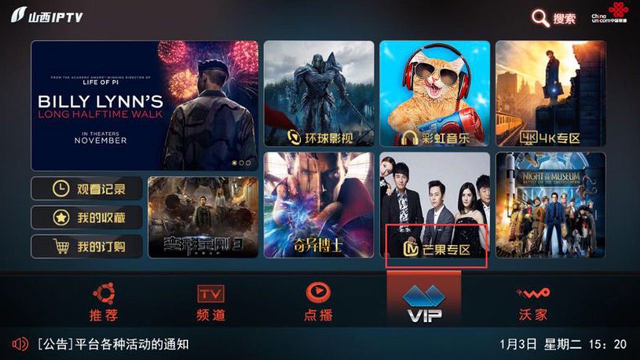 山西聯通,芒果TV專區